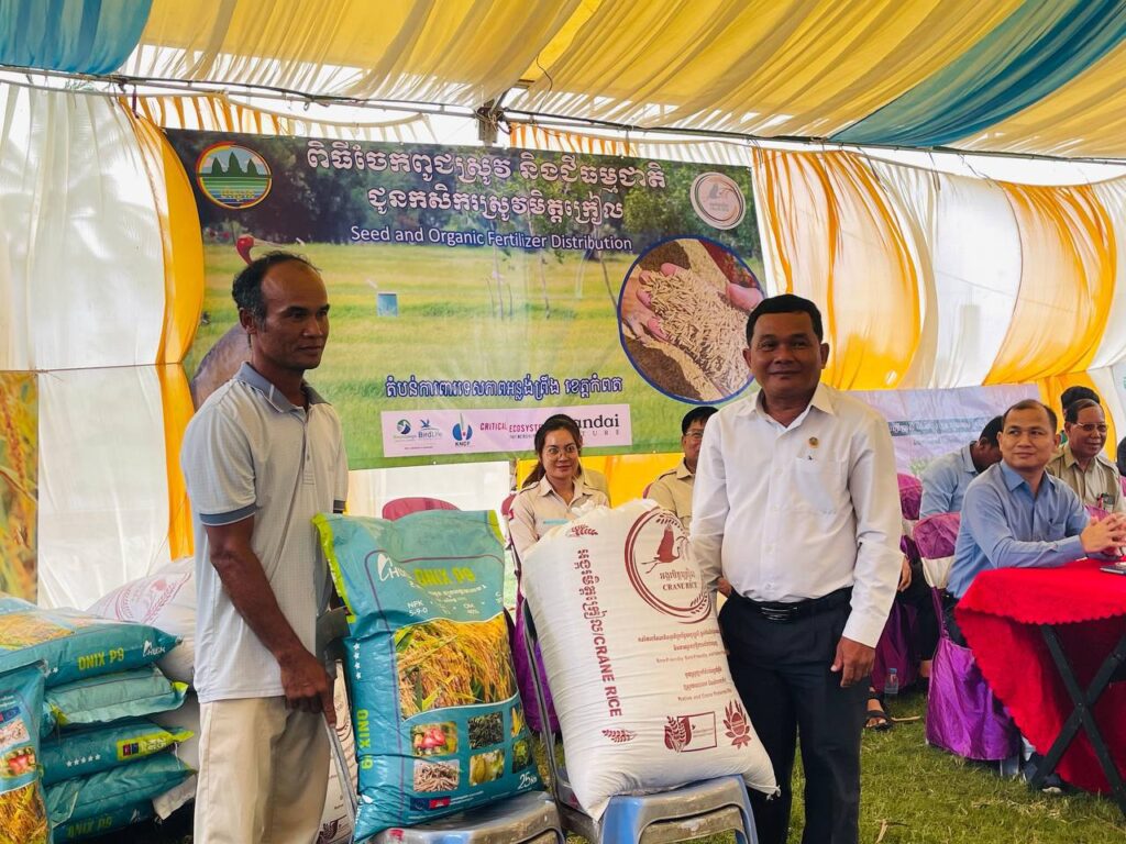 During the event, a total of 14.5 tons of seeds and 38.5 tons of organic fertilizer were distributed to support farming across 188 hectares of Crane Rice paddy fields.